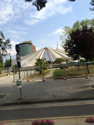 Pyramiden är ett monument tillägnat Envar Hoxha