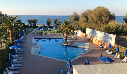 Vårt hotell låg litet utanför Rethymnon och det låg alldeles vid stranden.